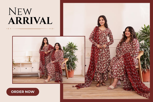 Maroon Floral Printed Alia Cut Cotton Kurta Palazzo Set With Dupatta
