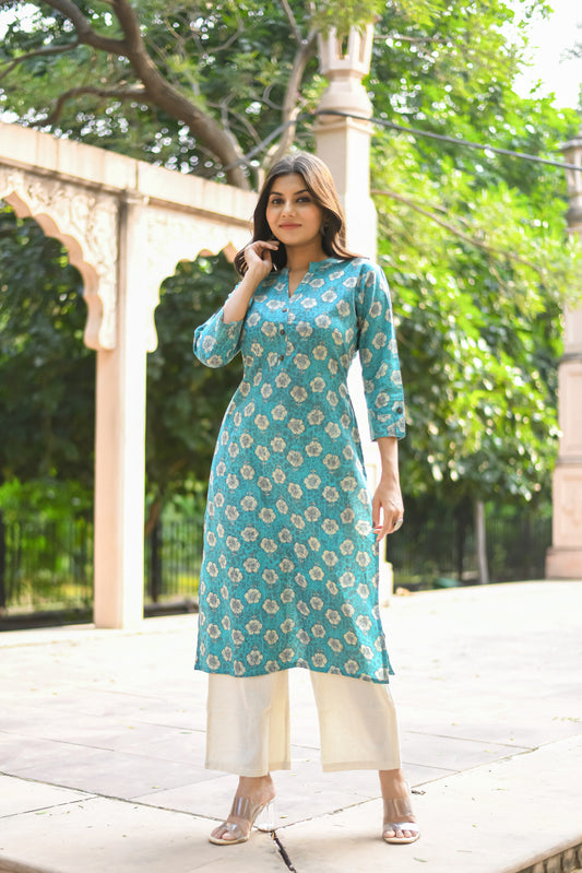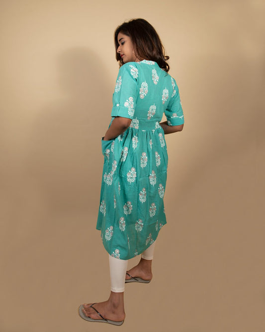 Sea Green Floral & Vine Printed Mix & Match Long Kaftan