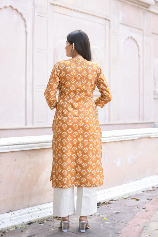 Mustard Yellow Motif Printed Straight Kurta with Pocket