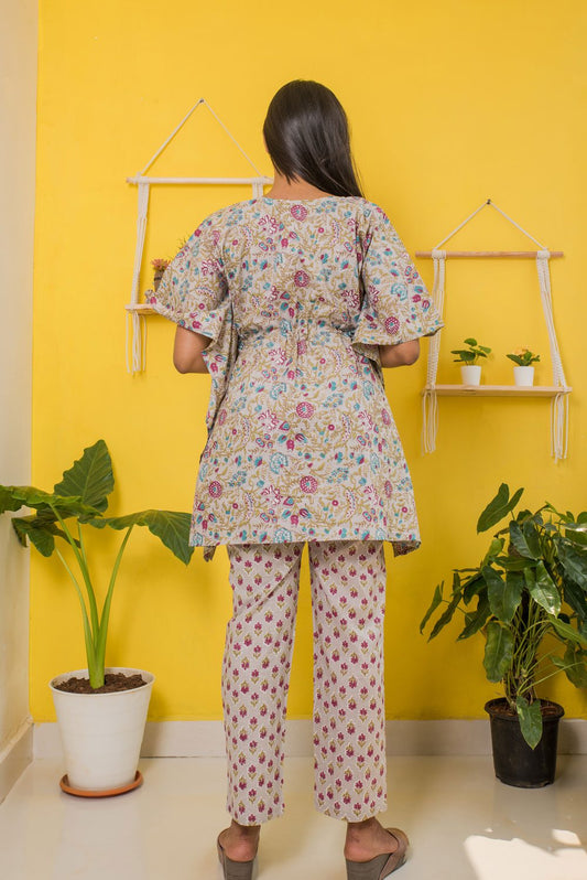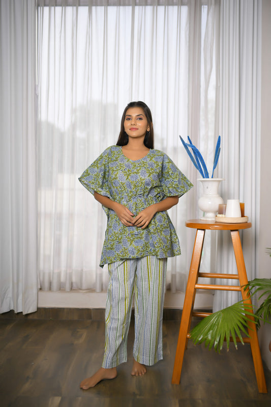 Navy Blue & Pink Stripes Printed Kaftan Set