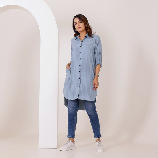 Navy Blue and Maroon Ajrakh Print Cotton Shirt