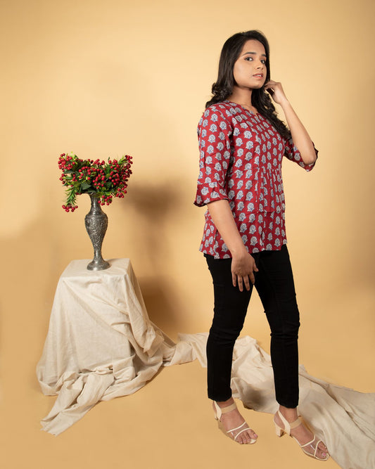 Maroon Buta Print Top