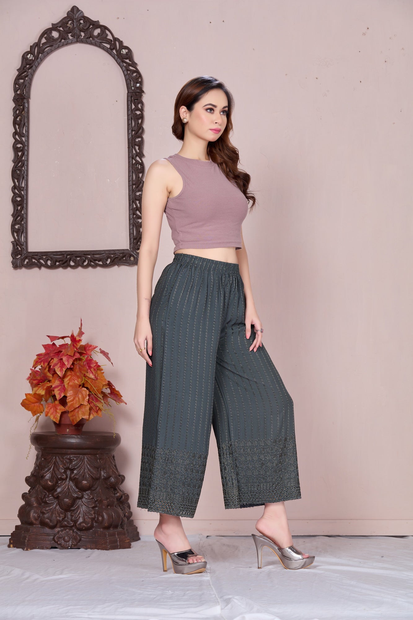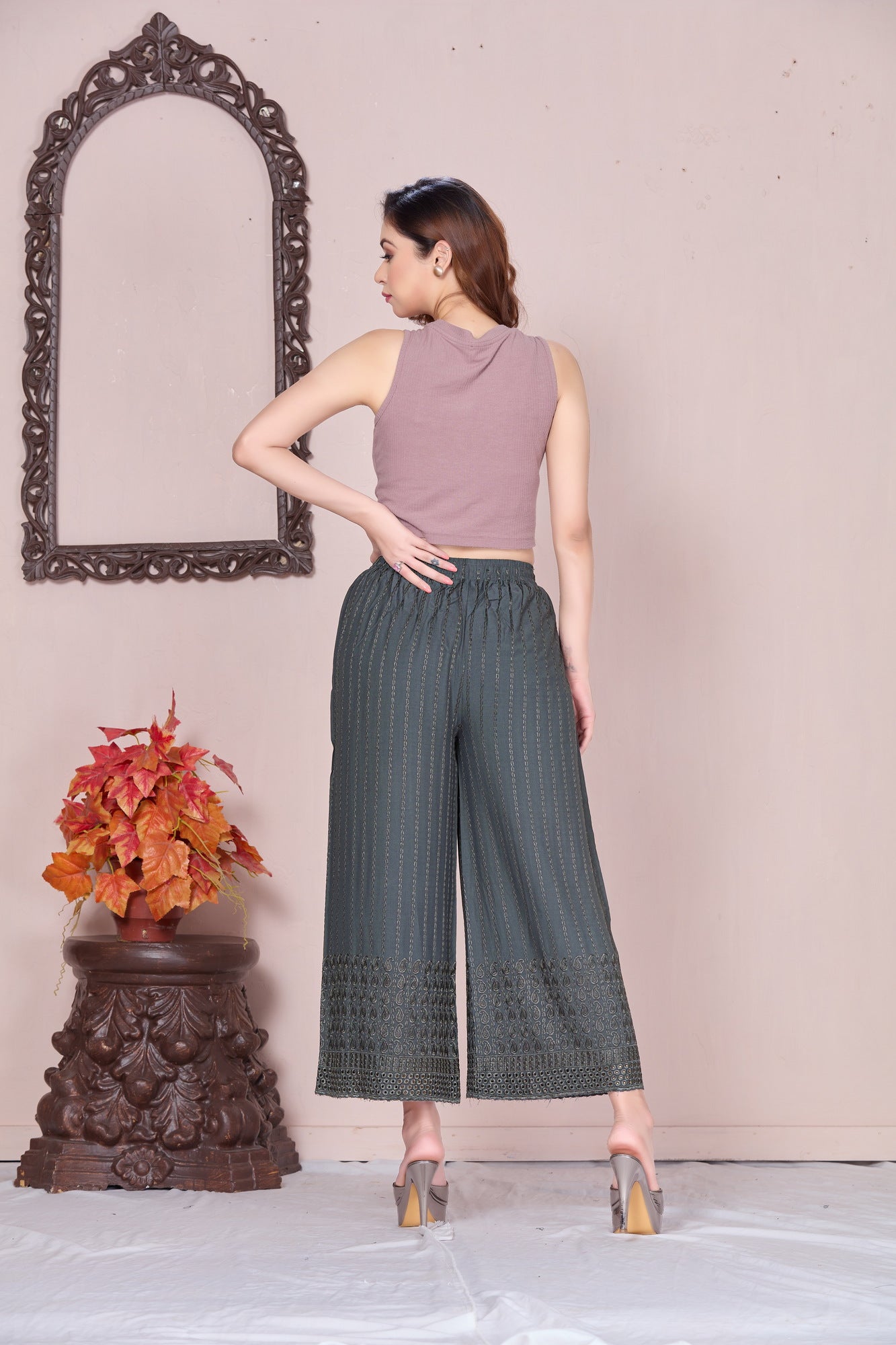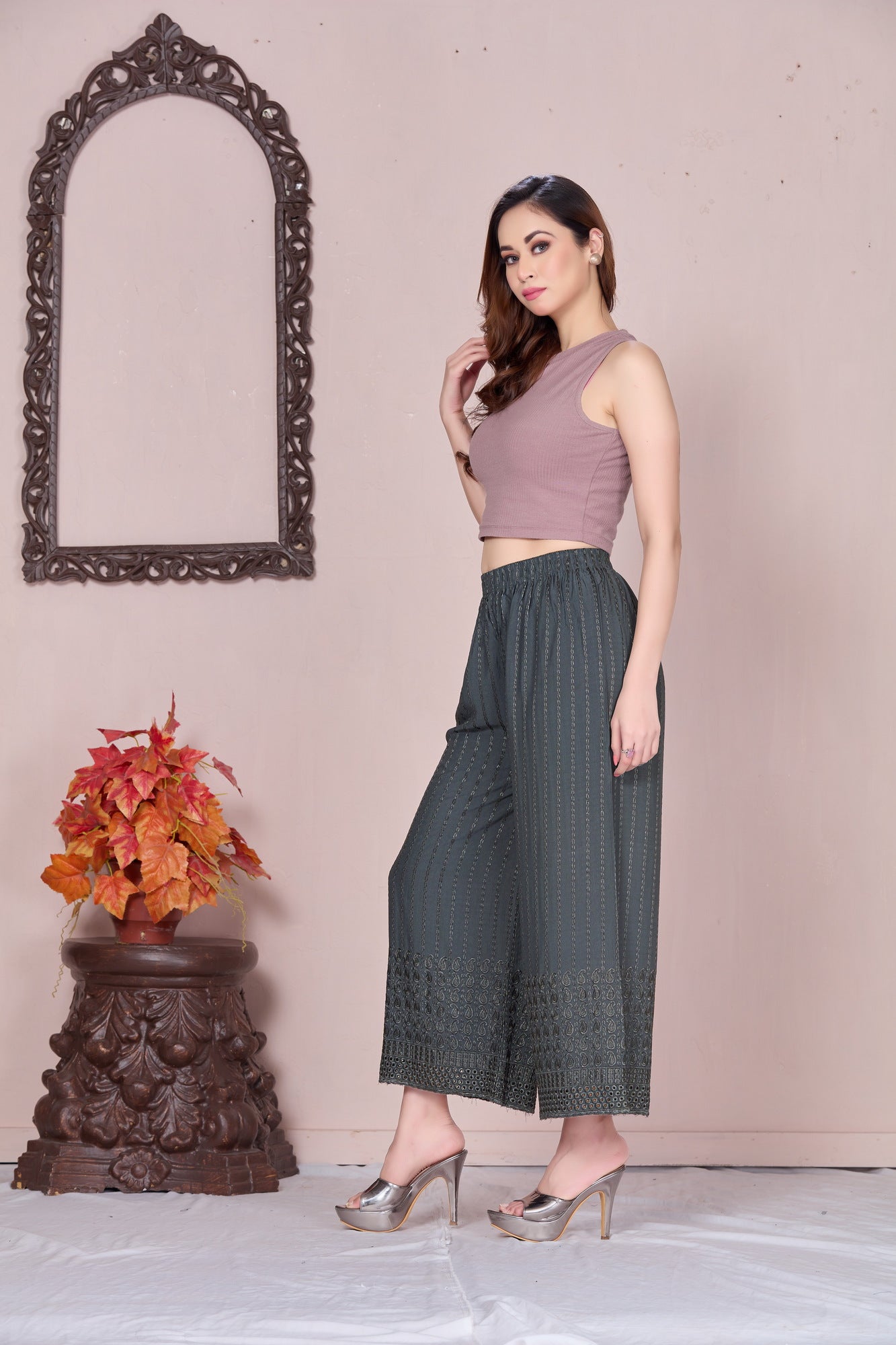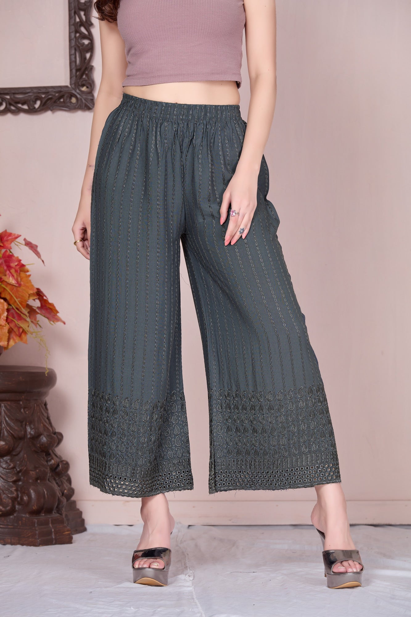 Flared Dark Grey Chikan (Embroidered) Palazzo Pant