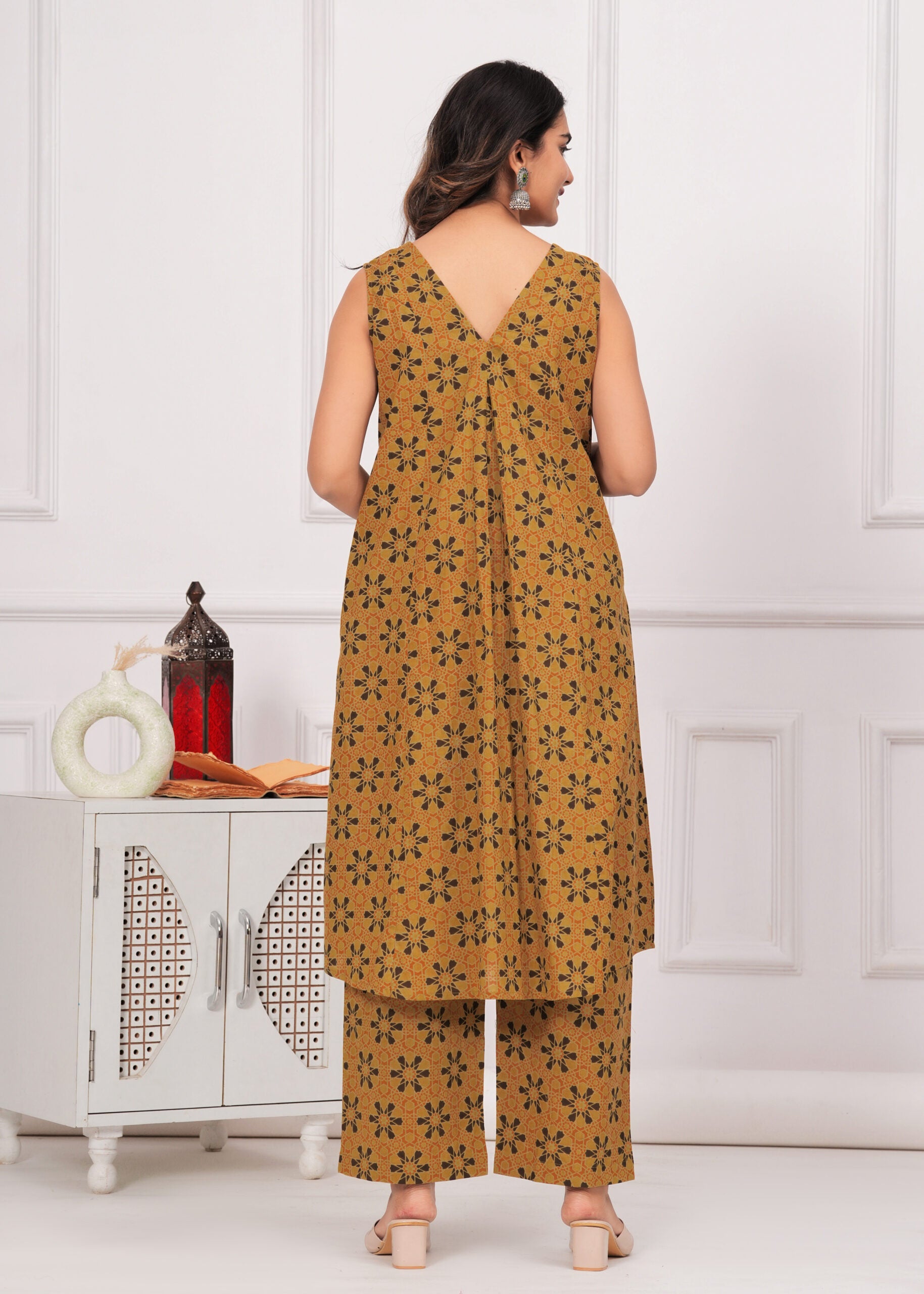 Mustard Yellow Ajrakh Printed Cotton Co-ord Set