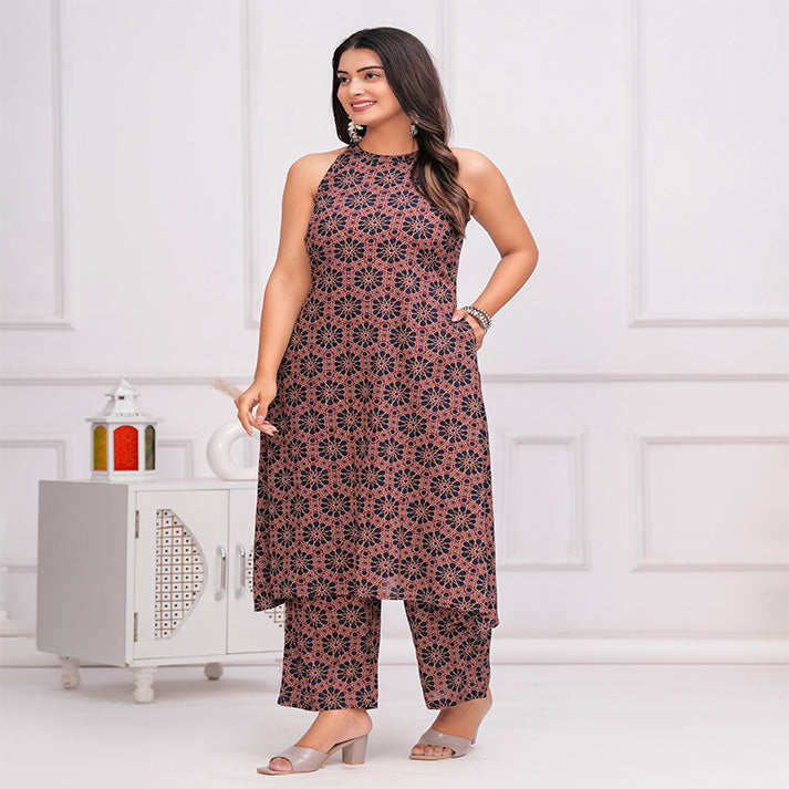 Navy Blue and maroon Ajrakh printed cotton coord set