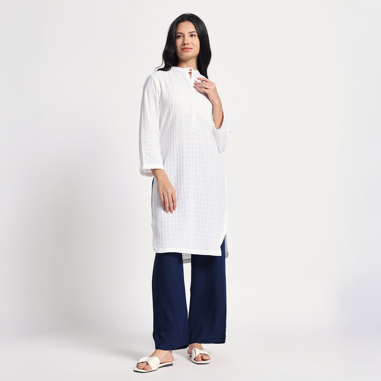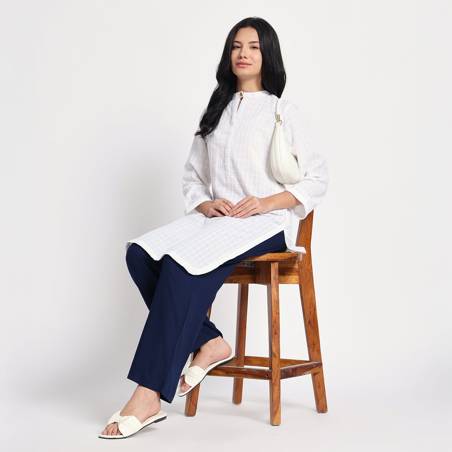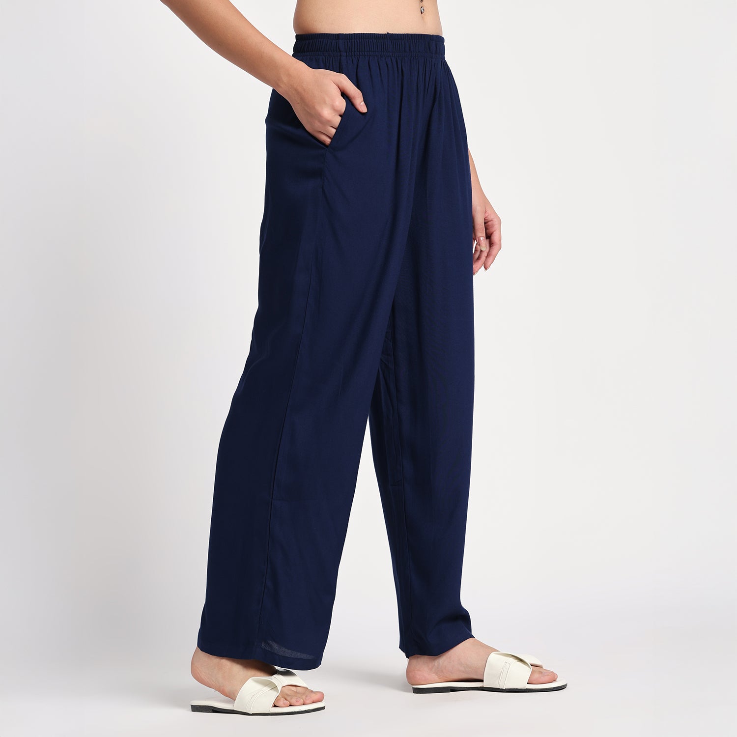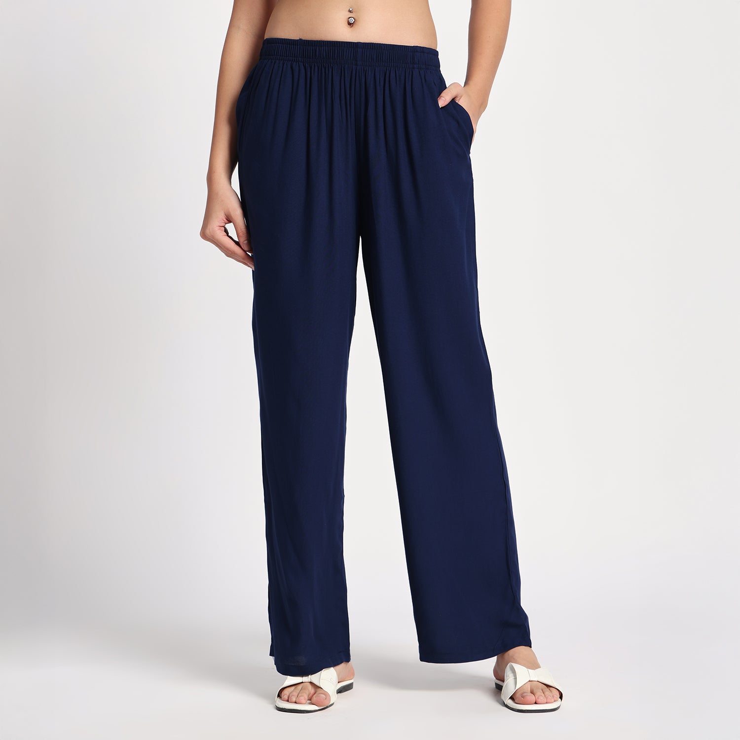 Add effortless comfort and style to your wardrobe with Vivika’s Straight Navy Blue Palazzo Pants. Made from 100% soft rayon fabric, these palazzos feature a sleek straight-fit design that flatters all body types. The stretchable elastic waistband ensures a flexible fit, while the lightweight fabric keeps you comfortable all day long. With an approximate length of 37 to 37.5 inches, these palazzos are perfect for daily wear, office, travel, and festive occasions.