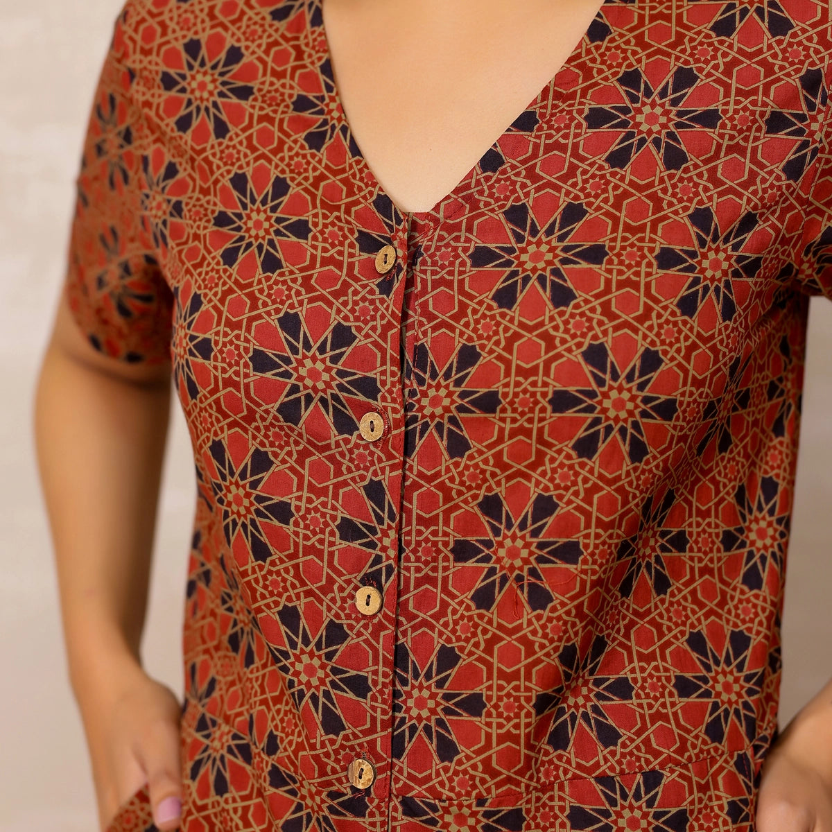 Red Ajrakh Print Cotton Jumpsuit