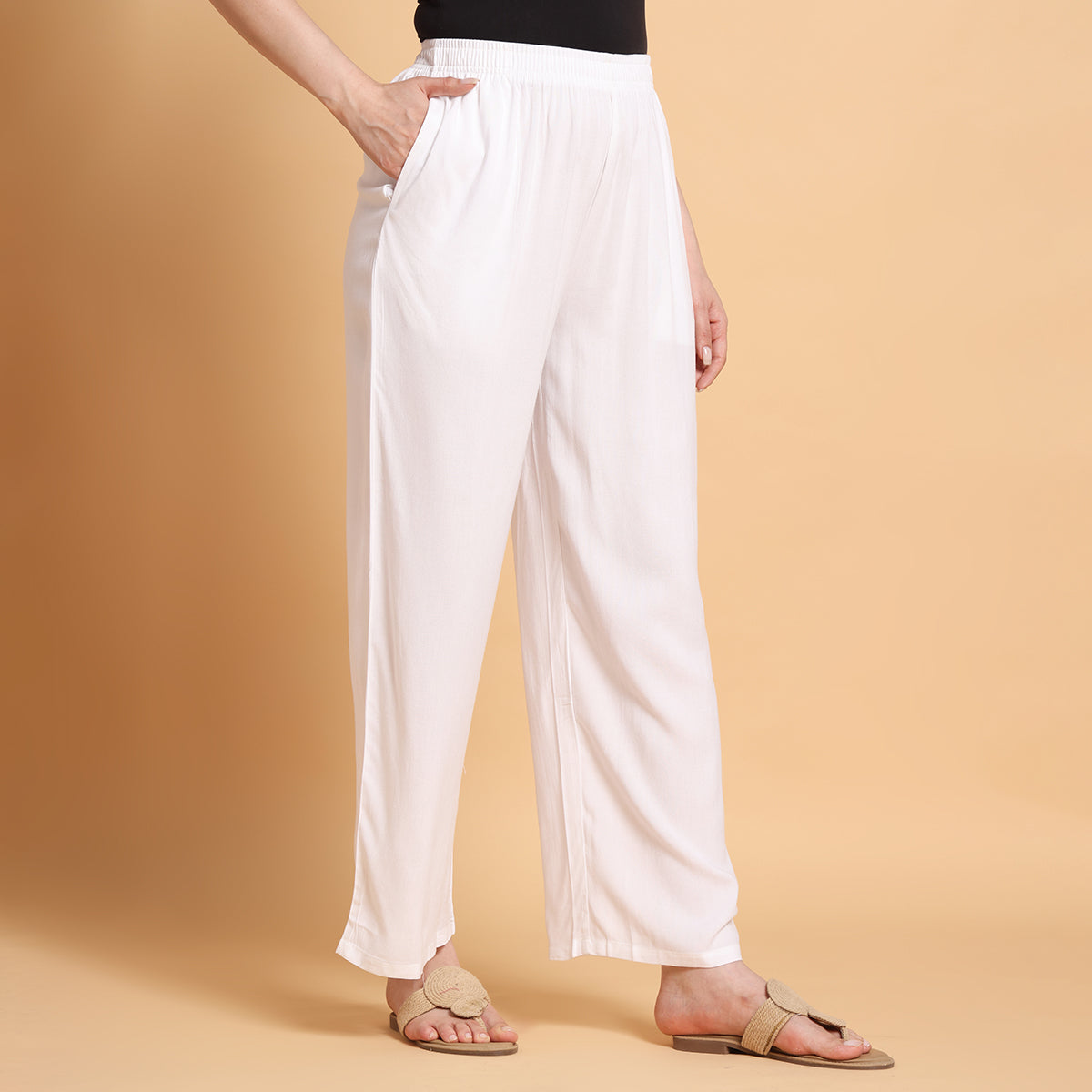 White Straight Palazzo Pants